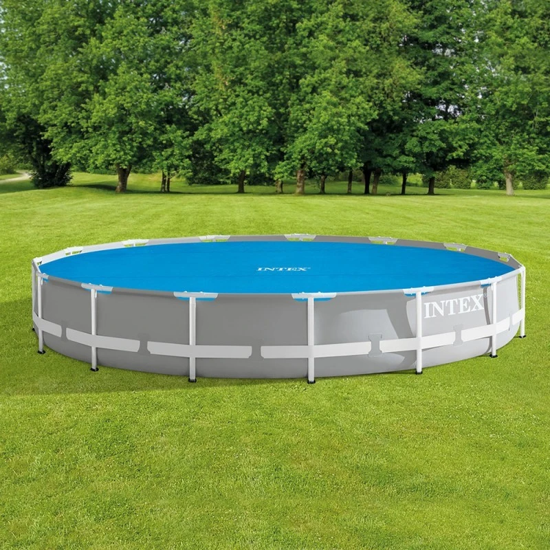 Cette bâche de 4,48 m convient pour les piscines Intex rondes de 4,57 m.