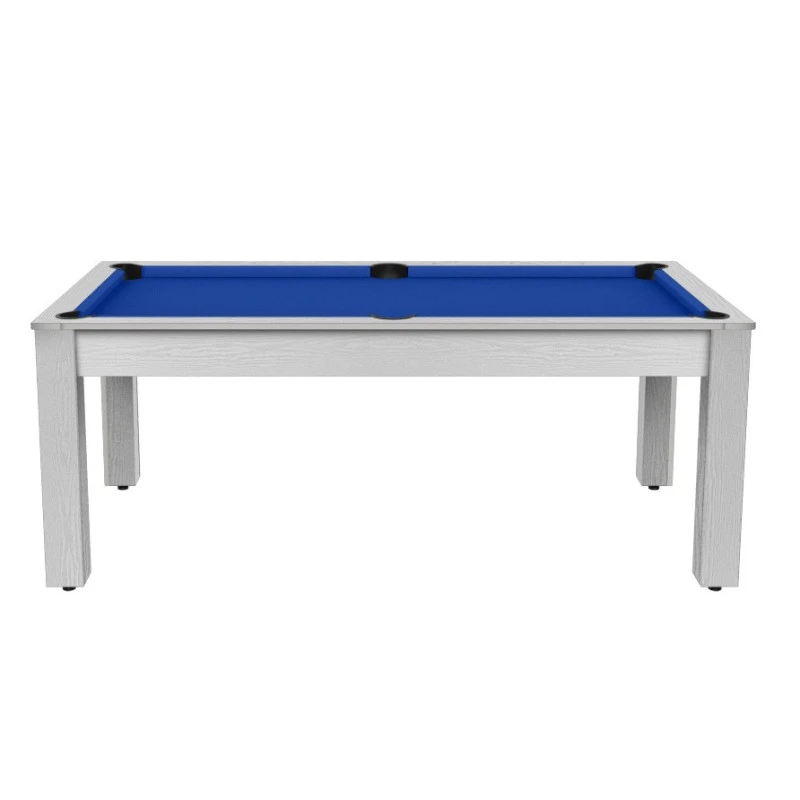 Découvrez le billard américain Arizona 7 pieds coloris blanc boisé / tapis bleu (taille 7 FT).