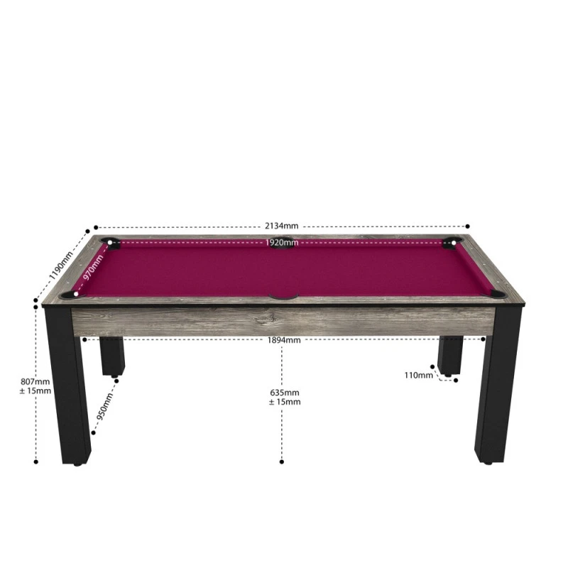 Pratique, avec le plateau dinatoire vendu séparément, ce billard peut se convertir en table de salle à manger pour 8 personnes.