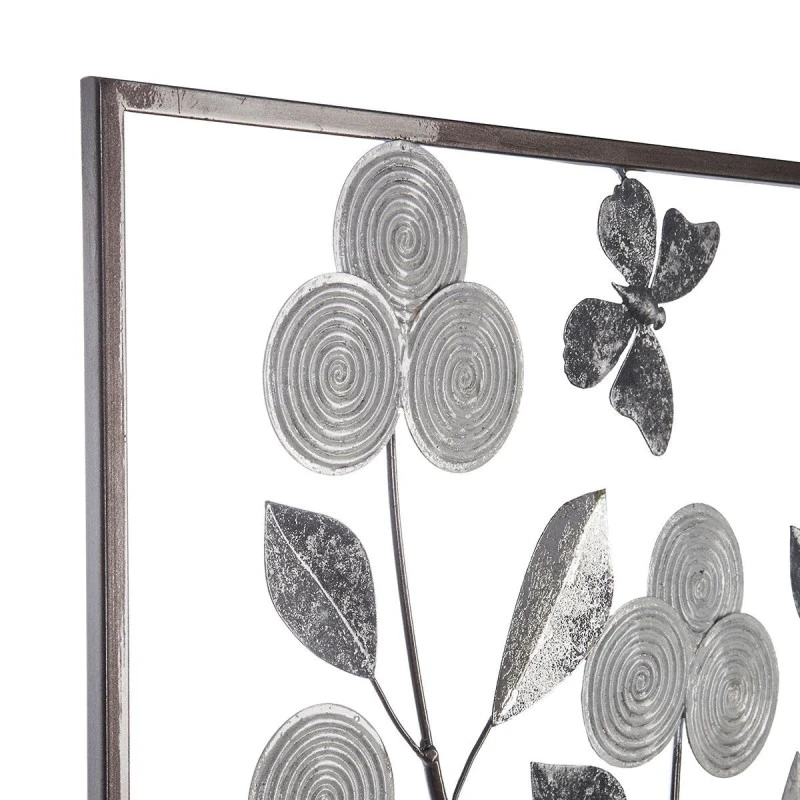 La tendance est à la déco en métal. Motif arbre stylisé avec feuilles, fleurs et papillon.