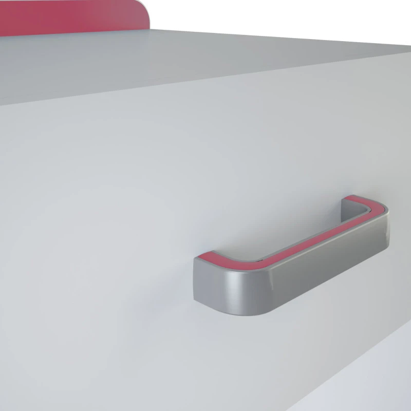 Cette table de chevet est réversible : détails roses ou détails bleus ? A vous de choisir !