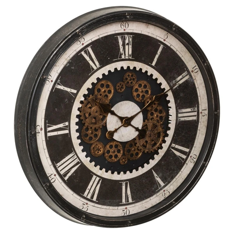 Grande horloge avec rouages animés de la marque Atmosphera. Cette horloge silencieuse effet vieilli affiche un style résolument vintage.