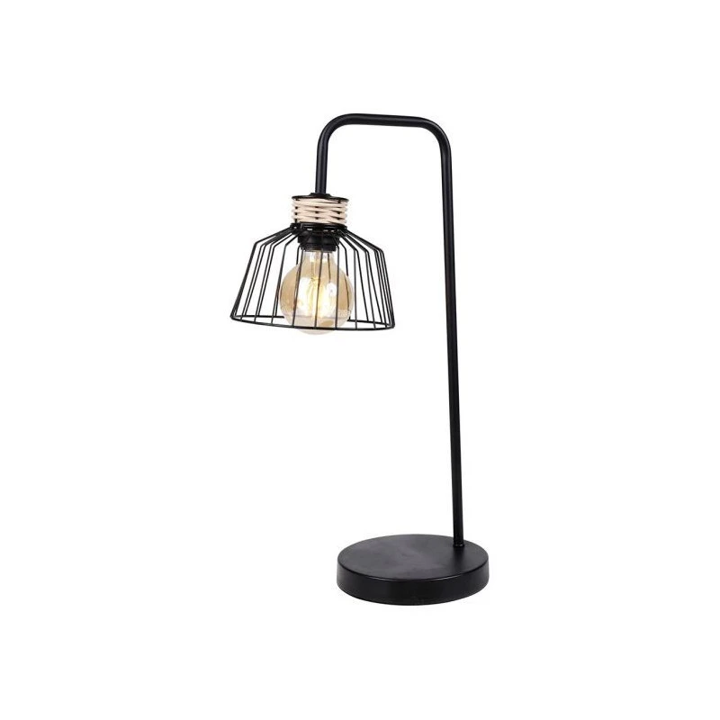 Apportez un point de lumière avec cette lampe à poser en métal noir et rotin de la marque Ostaria.