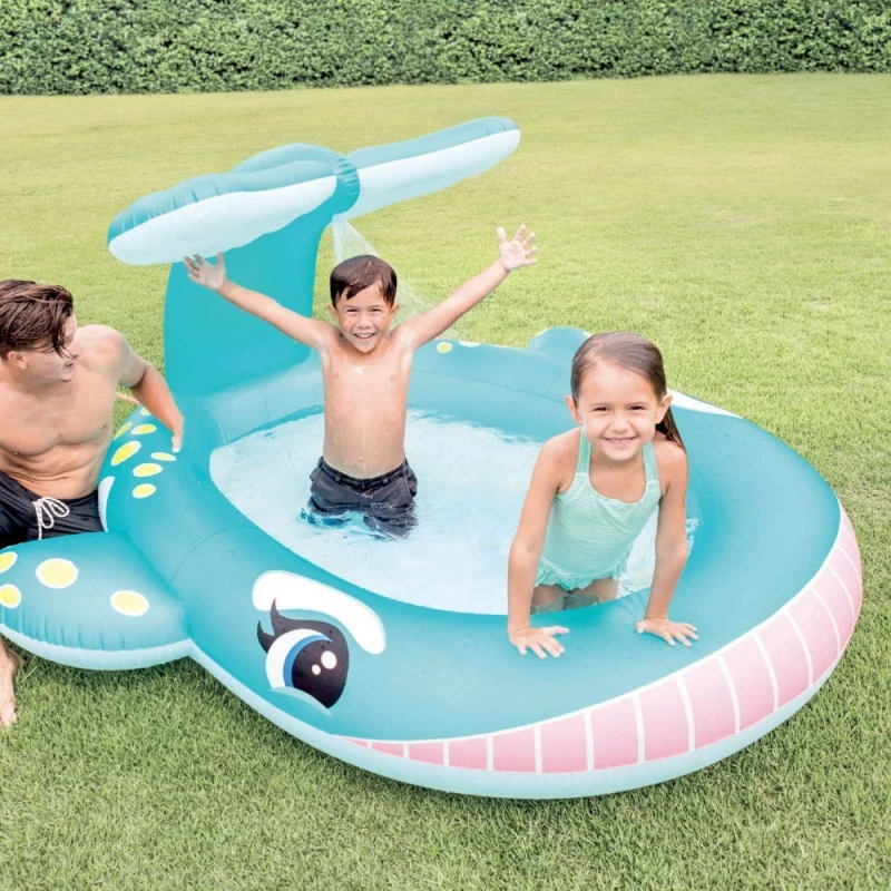 Offrez un petit coin de fraicheur Ă vos enfants avec cette petite piscine fontaine en forme de baleine de la marque Intex.Â