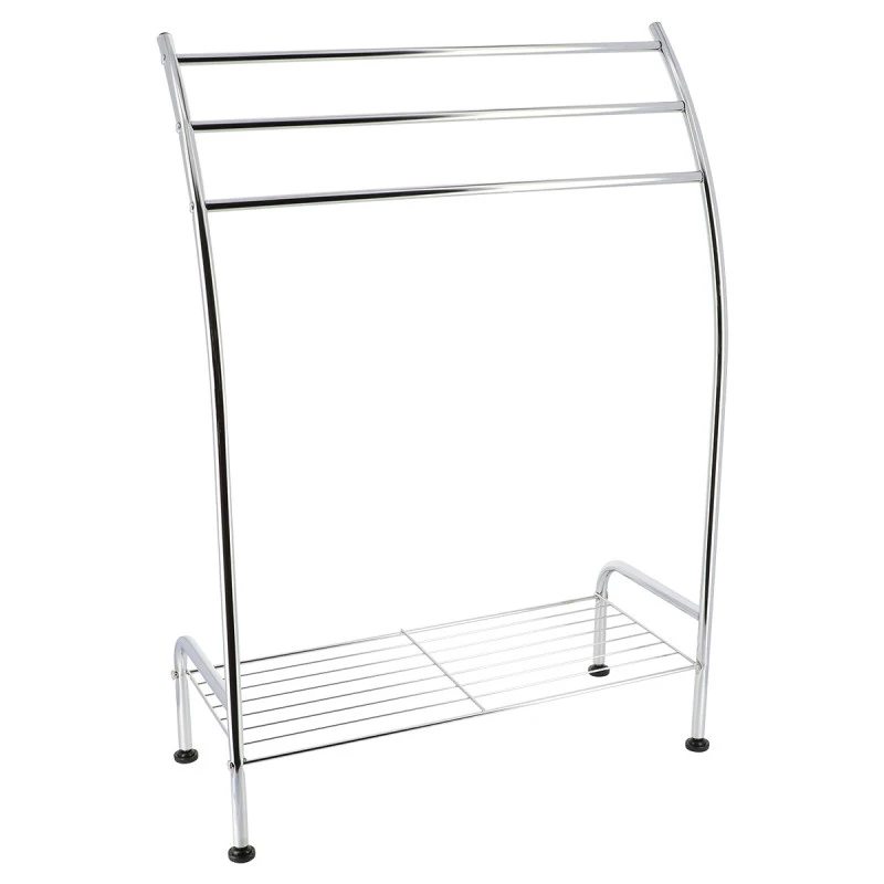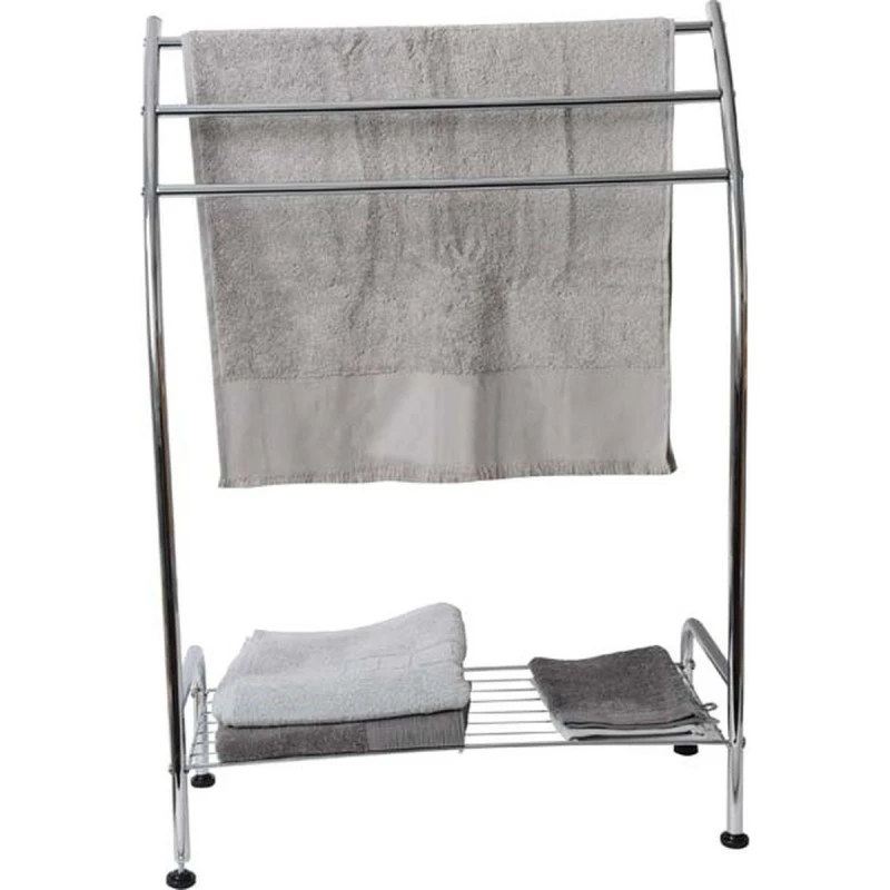 Ce meuble porte serviettes vous permettra à la fois de faire sécher serviettes et gants sur ses barres de grande longueur et vous apportera des rangements d’appoints sur ses 2 niveaux.