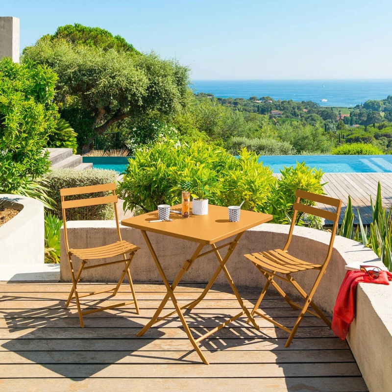 Profitez d’un petit coin repas au soleil grâce à cette table carrée Greensboro en coloris ocre de la marque Hespéride.