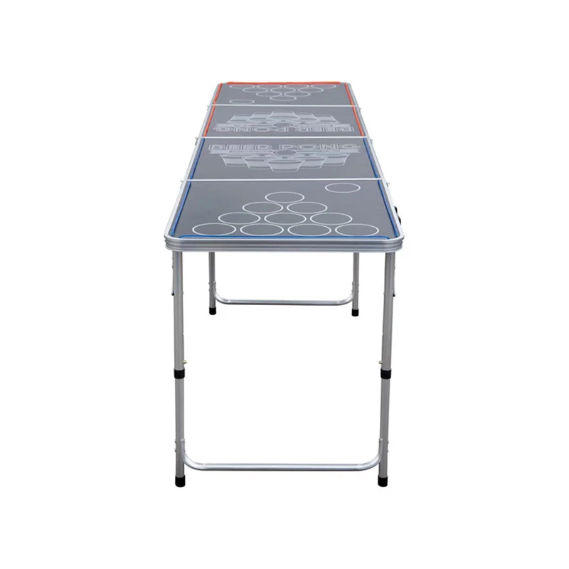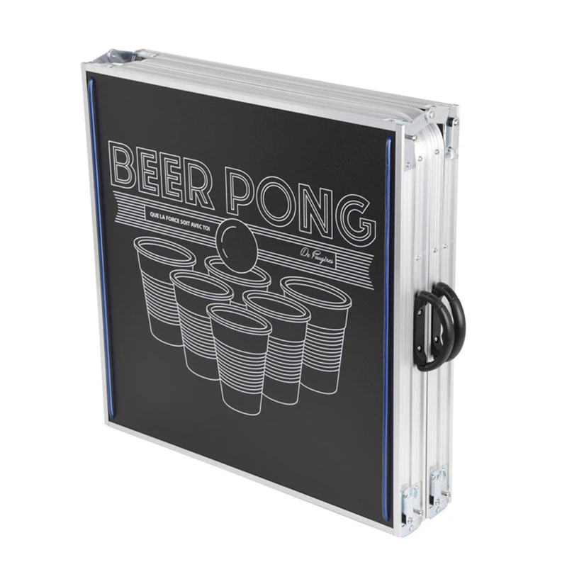 Cette table pliable en 4 d’une longueur totale de 240 cm vous permet de vous adonner en 1 contre 1 ou en équipe à des parties de beer-pong endiablées avec des verres remplis de votre boisson préférée.