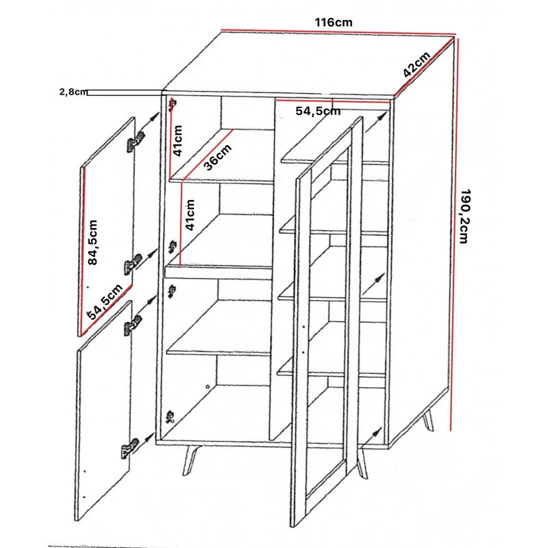 Cette vitrine dispose d’une porte vitrée avec 4 étagères intérieures + 2 portes pleines.